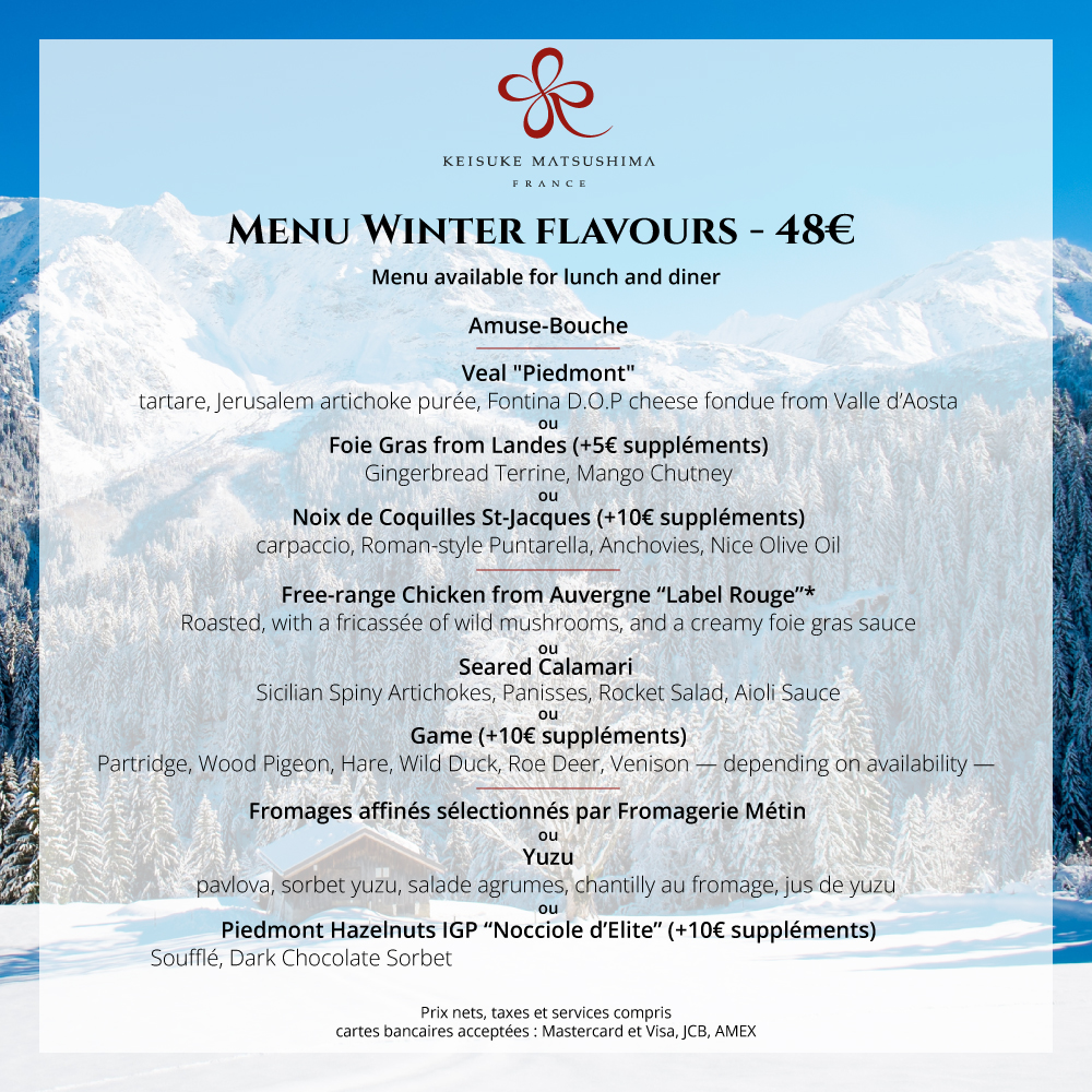 Déjeuner ou dîner chez Kei : un rituel sympathique dédié aux joies du palais et à l’inventivité. L’exigence de Keisuke Matsushima se retrouve à tous les niveaux de l’assiette qu’il propose. Du marché à la découpe, de la cuisson aux associations des saveurs, de la palette en bouche à l’harmonie des couleurs, du travail des textures à la combinaison des températures, de la rigueur de la carte à la gentillesse efficace du service.