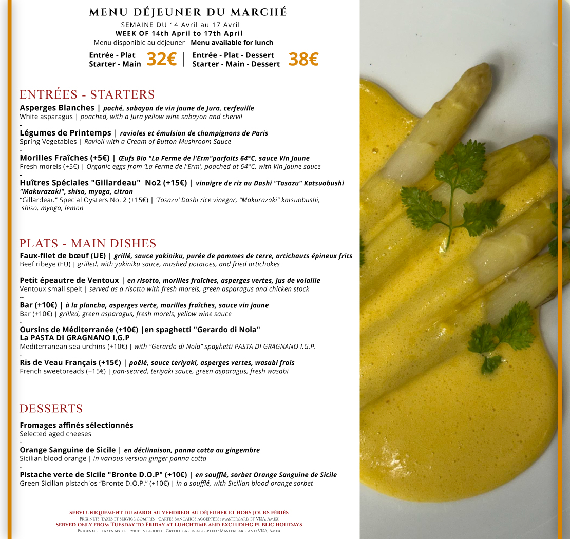 Dans le restaurant, 40 couverts dans un espace empreint de l’esprit du maître des lieux : confortable, épuré et sensuel. A la table d’hôtes, dans un décor plus moderne et minimal ouvert à 8 privilégiés, le chef sert lui-même la fantaisie de ses créations selon le marché du jour.