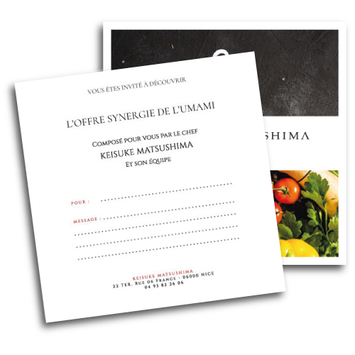 At Restaurant Keisuke Matsushima, we offer gift cards, perfect for sharing a memorable gastronomic experience with someone special.